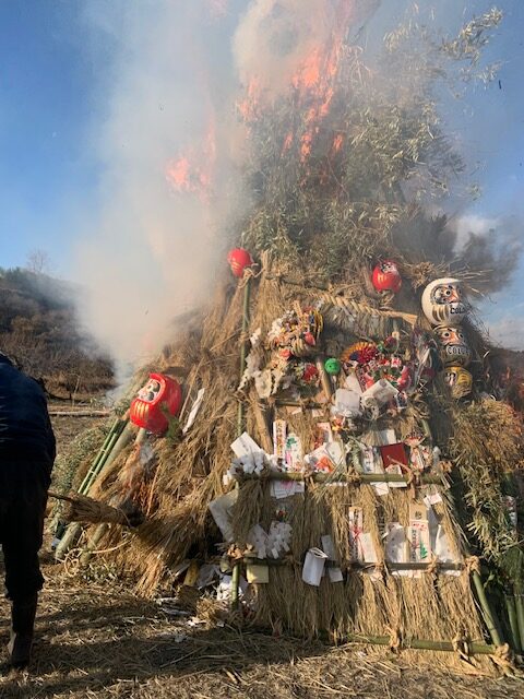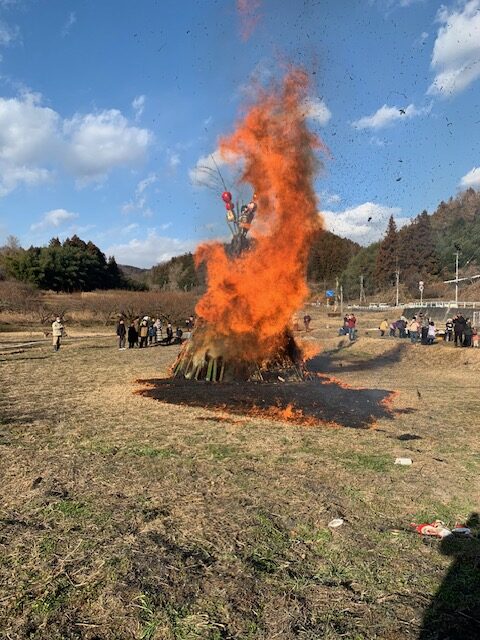 1月11日(日)安中市秋間地区合同で行われた祭礼行事『どんどん焼き』が焚き上げられました。